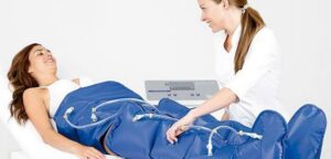 Masazhi  me presion ose thene ndryshe Prezoterapia është një teknikë masazhi mekanik që përdor një pajisje të presionit të ajrit për të stimuluar qarkullimin e gjakut dhe limfatik. Është veçanërisht efektiv në trajtimin e këmbëve dhe kyçeve të ënjtura, pasi ndihmon në lehtësimin e ndjenjës së rëndimit dhe ënjtjes që lidhen me këtë gjendje.